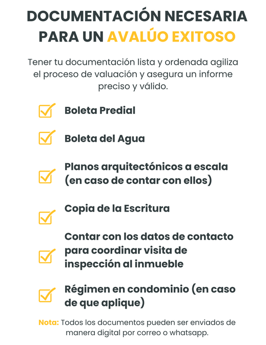 Tu avalúo será entregado en un plazo máximo de 5 a 7 días hábiles, de forma digital (PDF firmado y con respaldo oficial), y si lo requieres, también en físico.